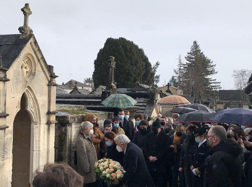 La commémoration du 26e anniversaire de la mort de François Mitterrand s’est déroulée samedi dernier au Cimetière des Grands’Maisons en présence d’un très grand nombre d’élus locaux et nationaux, parmi lesquels Mme Anne Hidalgo, que l’Institut François Mitterrand tient à remercier très sincèrement. La maire de Paris, après avoir visité la Maison Natale en début de matinée, a déposé au pied du caveau familial la gerbe du PS après que Mme la préfète de la Charente eut déposé celle de M. le Président de la République. Celui-ci avait par ailleurs appelé quelques instants plus tôt le Président de l’IFM pour lui faire part personnellement de « ses pensées en hommage à la mémoire de François Mitterrand et de son action comme Président. »