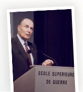 Le Président François Mitterrand rend visite aux officiers stagiaires de l’École de guerre où se déroule un forum intitulé « Quelle sécurité en Europe à l’aube du XXIe siècle. »…