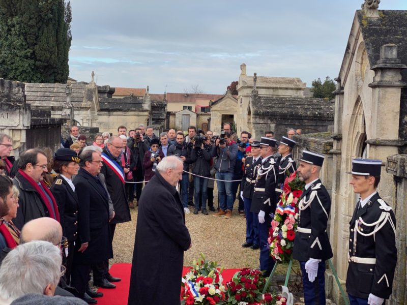 Le cortège s’est ensuite dirigé au cimetière des Grand’Maisons où une cérémonie d’hommage s’est tenue devant la tombe de l’ancien président en présence de Martine Pinville, Alain Boublil, Michel Cantal-Dupart et des amis de l’Institut François Mitterrand.